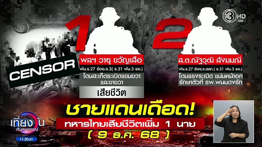 ทหารไทยพลีชีพอีก 1 นาย ถูกสะเก็ดระเบิดอาวุธวิถีโค้งของกัมพูชา
