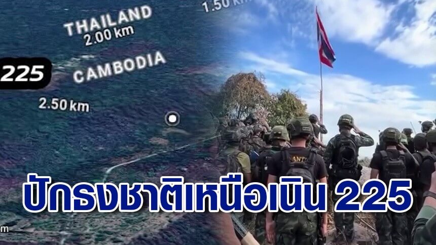 และต่อมา เพจข่าวทหาร ได้โพสต์คลิป วินาที ที่ทหารไทย ชักธงชาติไทยเหนือเนิน 225 เสียงเพลงชาติประกาศศักดา แผ่นดินไทยต้องเป็นของไทย
