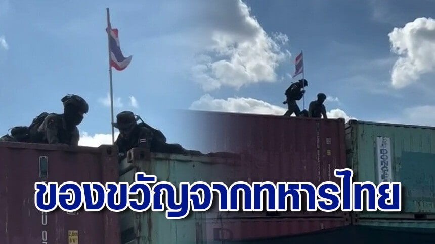 ของขวัญจากทหารไทย! ติดตั้งตู้คอนเทนเนอร์ปักธงไทย วางรั้วกั้นบ้านหนองจาน
