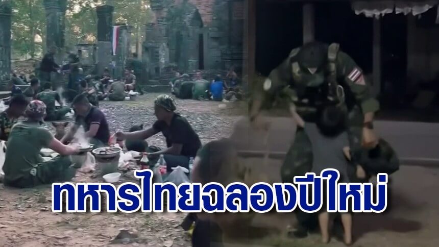 จากหน้าแนว สู่หน้าเตา! ทหารไทยฉลองปีใหม่ สังสรรค์หมูกระทะ พักรบเขมร