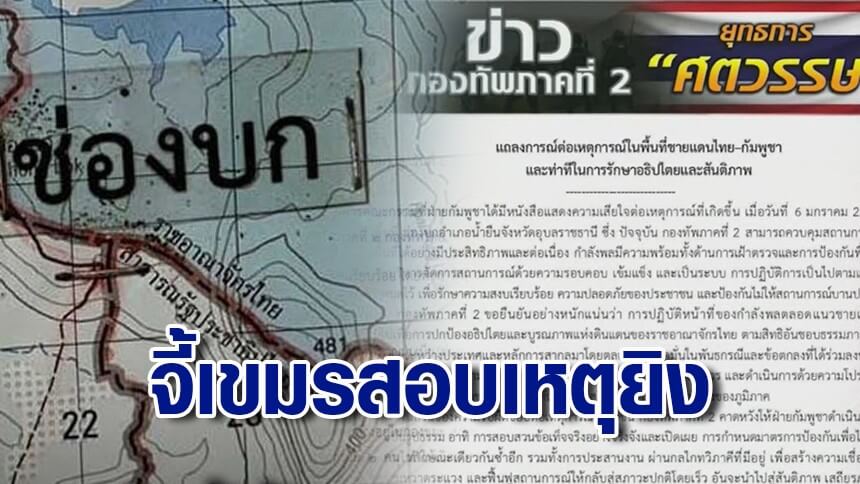 ไทยจี้เขมร สอบเหตุยิงเข้าช่องบก เตือนอย่าให้เกิดเหตุซ้ำ หลังอ้างกระสุนระเบิดในขยะ ทำทหารไทยเจ็บ