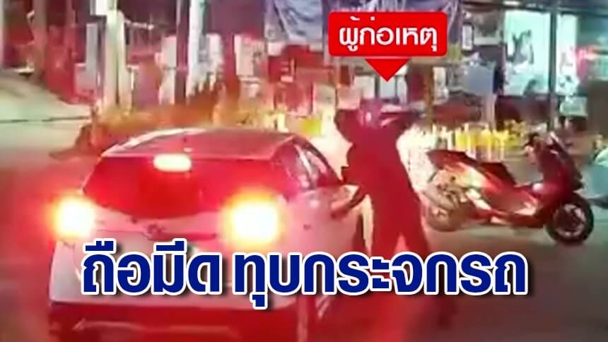 หญิงผวาตัวสั่น ชายฉกรรจ์ถือมีด ทุบกระจกรถ โชคดีล็อกประตู - พลเมืองดีเข้าช่วย