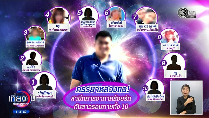 อย่าให้มีคนที่ 11! เมียหลวงแฉจักรวาล สามีทหารอากาศมากรัก มีเมียน้อย 10 คน สารพัดอาชีพ