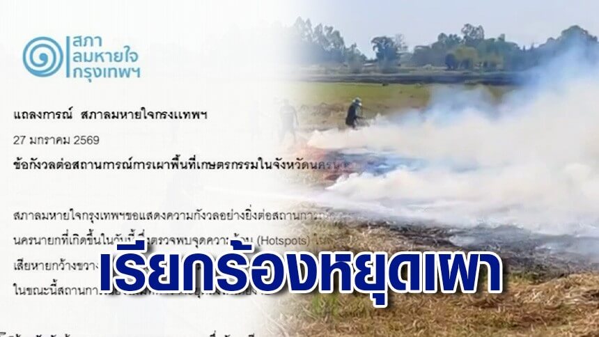 สภาลมหายใจกรุงเทพฯ เรียกร้องยับยั้งเหตุเผาทุ่งกว่าหมื่นไร่ ส่งผลกระทบต่อประชาชน