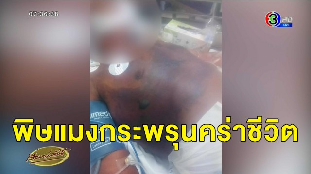 โดยนางช่อฟ้า แซ่อุ๋ย อายุ 48 ปี น้องสาวผู้เสียชีวิต ได้เปิดเผยว่า เมื่อช่วงเย็นวันที่ 23 ก.ค.ที่ผ่านมา หลังจากที่นายบุญธรรม พี่ชาย ผู้เสียชีวิต เดินทางกลับจากหาปลา มาถึงบ้าน เพียง 3 ชั่วโมง ก็เริ่มมีอาการจุกแน่นหน้าอก โดยนางเบา ภรรยาผู้ตาย ได้โทรแจ้ง ก่อนที่จะรีบนำส่ง รพ.แกลง ก่อนที่ทางแพทย์จะตรวจแล้วให้ยากลับมากินที่บ้าน จนกระทั่งช่วงเช้าวันที่ 24 ก.ค.63 อาการของนายบุญธรรม ยิ่งกำเริบหนักขึ้น มีรอยไหม้ เป็นแผลพุพองที่ผิวหนัง เป็นสีดำเกรียมคล้ายกับถูกไฟไหม้ตรงบริเวณหน้าอก ผู้เสียชีวิตยังพูดได้ และบอกว่าปวดแสบปวดร้อนมาก และ หายใจติดขัด จึงรีบพาตัวส่ง รพ.ระยอง