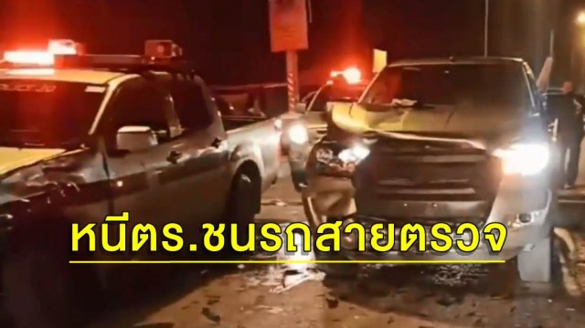 หนุ่มซิ่งกระบะหนี ตร.จับยาเสพติด พุ่งชนรถสายตรวจพังยับ อ้างมองไม่เห็น