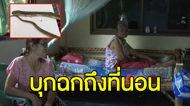 สยอง! ป้าถูกงูเห่าใบลานฉกเท้าเข้าเต็มๆ ผวาโผล่มาจากที่นอน คาดหนีฝนมาซุก