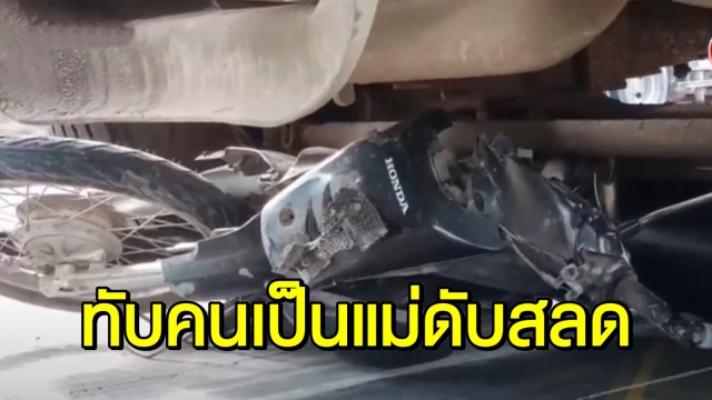 รถบรรทุกปูนไม่เห็น จยย.แม่ลูกจอดอยู่ข้างหน้า ทับแม่ดับ ลูกสาว 9 ขวบรอดหวุดหวิด
