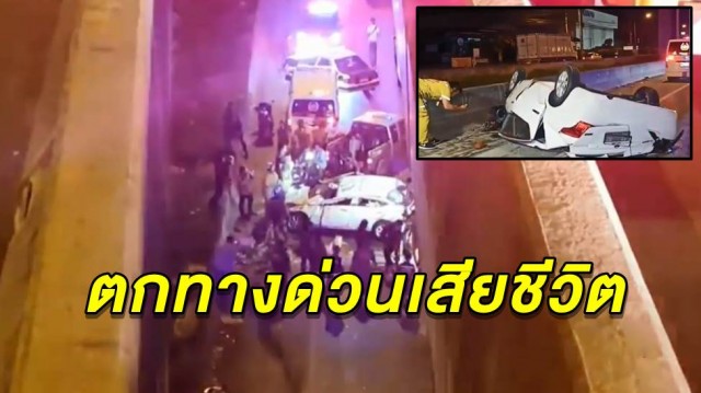 หนุ่มขับเก๋ง ปีนแท่งปูนแยกตัววาย ตกทางด่วนบูรพาวิถีดับ