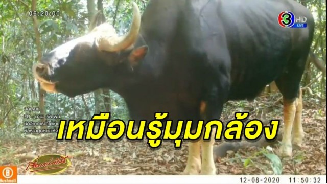 คลิปจากกล้องดักถ่ายสัตว์ป่า ที่เจ้าหน้าที่อุทยานแห่งชาติแก่งกระจาน นำไปติดตั้งไว้เพื่อเก็บข้อมูลสัตว์ป่าในพื้นที่อุทยาน เผยให้เห็นพฤติกรรมของกระทิง สัตว์ป่าคุ้มครองของไทยที่กำลังส่งเสียงร้อง กลางป่าแก่งกระจาน
