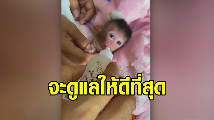 ที่พลัดกับแม่ลิงหลังออกลูกใหม่ ๆ ย่านศาลพระกาฬ ชาวบ้านนำส่งให้สัตวแพทย์หญิงจุฑามาศ