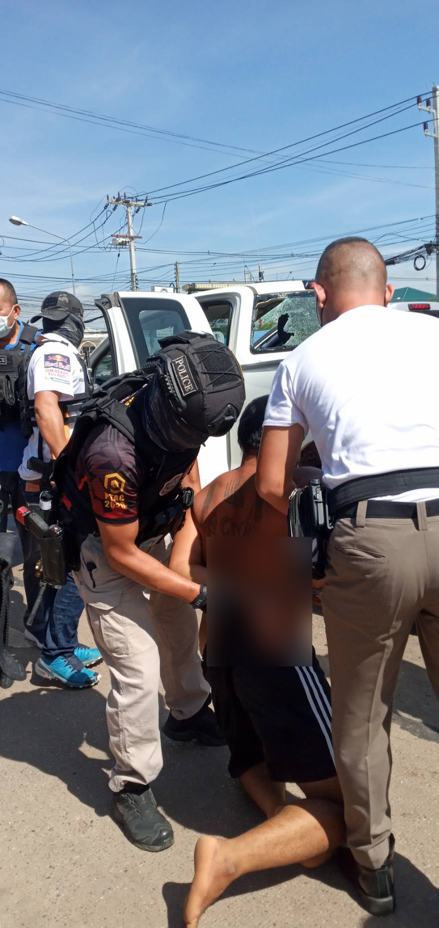 เจ้าหน้าที่ตร.พร้อมอาวุธปืนครบมือกว่า 100 นายกดดันพร้อมประกาศขอให้มอบตัว สุดท้ายสามารถเข้าจับตัวเอาไว้ได้ ตรวจสอบภายในรถ พบอาวุธปืนสั้น ขนาด 9 มม. พร้อมกระสุน ปลอกกระสุนตกอยู่ภายในรถจำนวนมาก และพบปืนลูกซองยาวหนึ่งกระบอกพร้อมกระสุน ยังไม่ยืนยันว่ามีประวัติเป็นผู้ป่วยทางจิตหรือไม่ ต้องรอตรวจสอบตามขั้นตอนอีกครั้ง