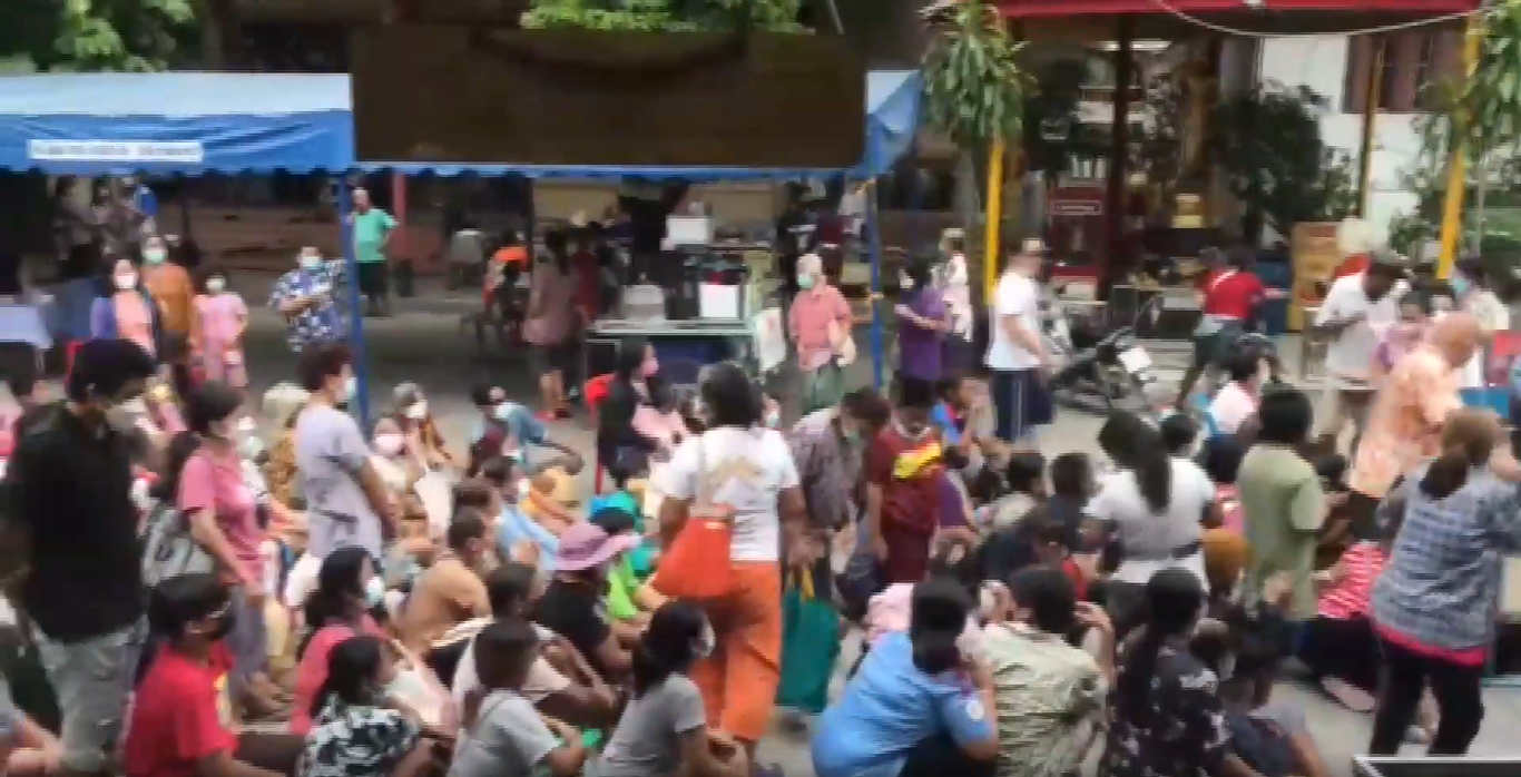 ทอดกฐินวัดดัง แจกถุงยังชีพ คนนับพันแห่รับ หวิดโกลาหล
