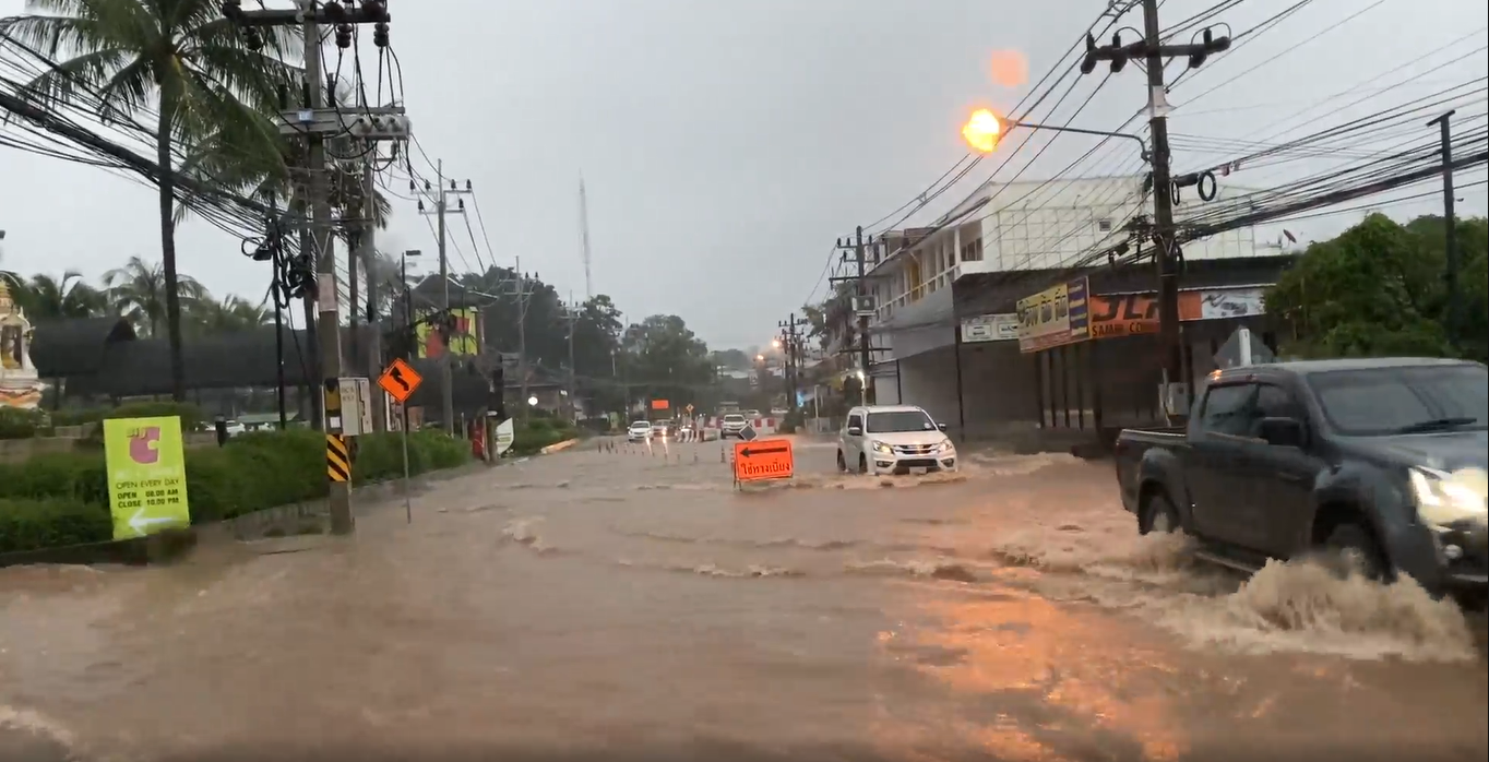 เกาะสมุยฝนตกนานนับชั่วโมง น้ำระบายลงท่อไม่ทัน