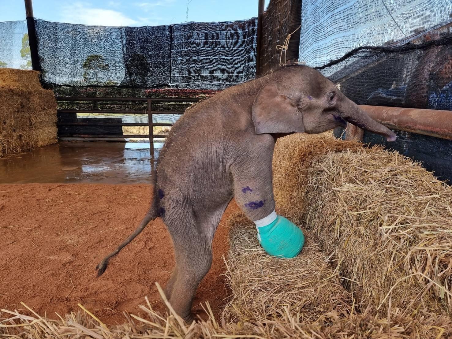 โดยในวันนี้ สพ.ญ.สุนิตา วิงวอน และเจ้าหน้าที่ส่วนอนุรักษ์สัตว์ป่า สบอ.2 ทีมสัตวแพทย์ประจำโรงพยาบาลสัตว์เนินพลับหวาน พัทยา ทำการรักษาบริเวณข้อเท้าข้างขวาที่ถูกบ่วงยังมีคราบหนองคลุมอยู่ ผิวหนังเริ่มบีบเข้ามาแคบลง และกล้ามเนื้อชมพูสดดี จึงทำการขัดและล้างแผลให้สะอาด หลังจากนั้นได้ทายาฆ่าเชื้อเฉพาะที่และพันแผลป้องกันสิ่งสกปรก และจัดทำโฟมเป็นเท้าเทียมชั่วคราวเพื่อเป็นการพยุงขาข้างนี้