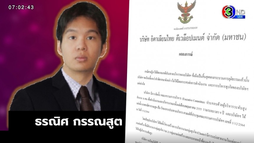 เมื่อวานนี้ (9 ธ.ค. 64) บมจ.อิตาเลียนไทย ดีเวล๊อปเมนต์ ได้ออกแถลงการณ์ ประกาศเรื่องบริหารจัดการ มีการจัดการแบ่งหน้าที่เป็นที่เรียบร้อยก่อนหน้า