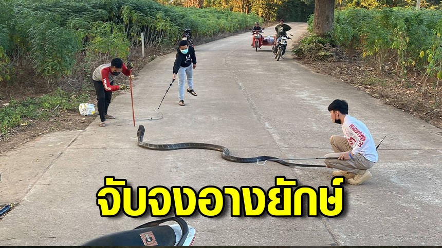 จงอางยักษ์ยาว 4 เมตร บุกบ้านชาวบ้าน กู้ภัยรุดจับด้วยมือเปล่า