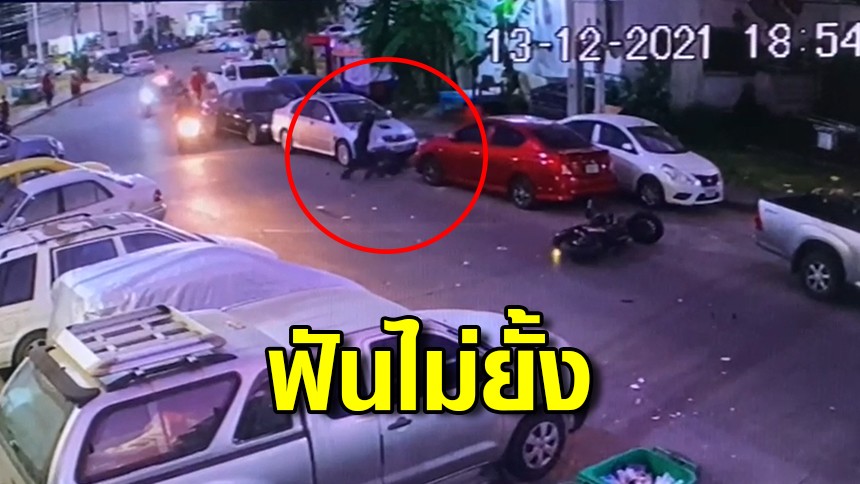 ภาพจากกล้องวงจรปิดวันที่ 13 ธ.ค. 64 เวลาประมาณ18.54 น. จับภาพชายอายุประมาณ 17 - 18 ปีสวมเสื้อยืดสีขาวใส่กางเกงขายาวสวมหมวกกันน๊อคแบบเต็มใบ ขี่รถจยย.ไม่ทราบยี่ห้อขับมาด้วยความเร็วชนเข้ากับท้ายรถวินจยย.รับจ้างอย่างแรง รถล้มไถลไปไกล ก่อนจะลุกขึ้นมาเดินไปขอโทษผู้ขับขี่รถจยย.รับจ้าง