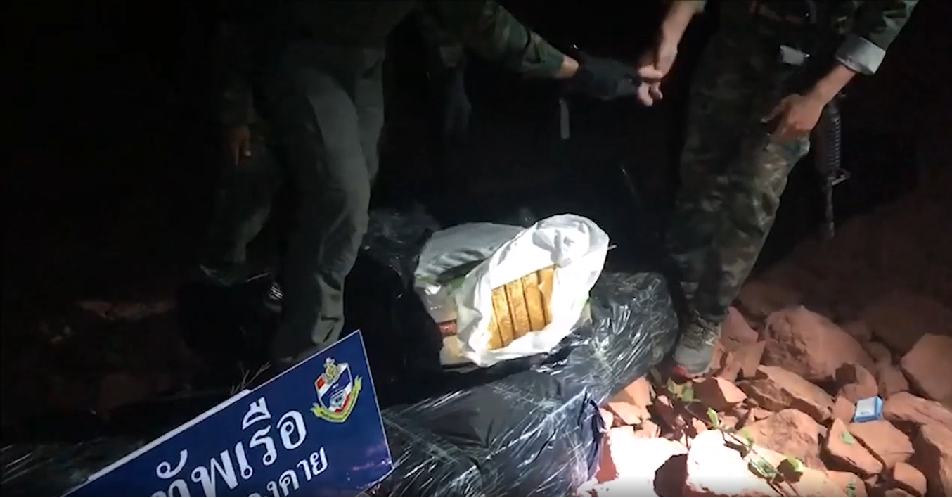 จนกระทั่งเวลา 03.00 น. จนท.ชุดซุ่มเฝ้าตรวจบริเวณริมฝั่งแม่น้ำโขงหน้าโรงเรียนหาดแฮ่ ได้ยินเสียงเครื่องยนต์ของเรือจำนวน 1 ลำ แล่นตัดจากกลางแม่น้ำโขงเข้ามายังฝั่งไทย เมื่อเห็นดังนั้นจึงได้ใช้กล้องตรวจการณ์กลางคืนตรวจสอบพบว่าภายในเรือมีบุคคลต้องสงสัยนั่งมาจำนวน 4 คน พร้อมกับบรรทุกวัตถุสีดำต้องสงสัยมาด้วย