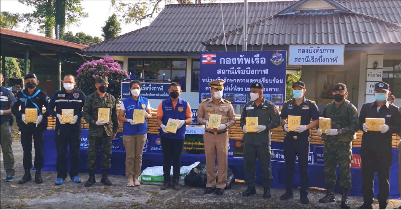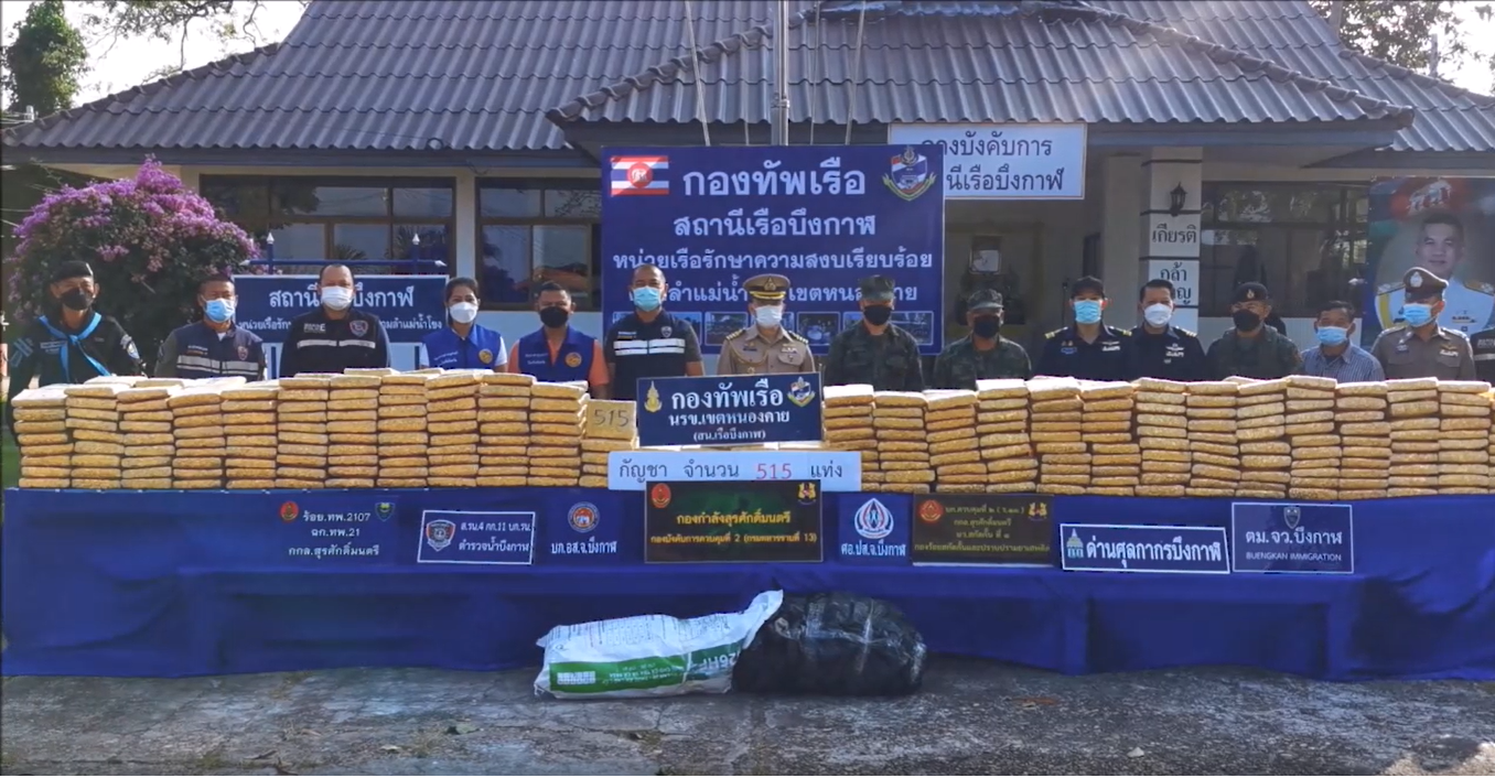 วันที่ 18 ธ.ค. เวลา 14.00 น. นาวาเอก นิรุตติ์ มาทอง หัวหน้ายุทธการการข่าว หน่วยเรือรักษาความสงบเรียบร้อยตามลำแม่น้ำโขงเขตหนิงเขต (นรข.เขตหนองคาย) ร่วมกับฝ่ายปกครองอำเภอบุ่งคล้า,ตำรวจ สภ.บุ่งคล้า ตม.บึงกาฬ ตำรวจน้ำ ตชด.244 ด่านศุลกากรบึงกาฬ และหน่วยงานความมั่นคงในพื้นที่ แถลงข่าวการจับกุมกัญชาแห้งอัดแท่ง จำนวน 515 แท่ง น้ำหนักประมาณ 515 กิโลกรัม พร้อมผู้ต้องหาชาย 1 ราย มูลค่ากว่า 10 ล้านบาท