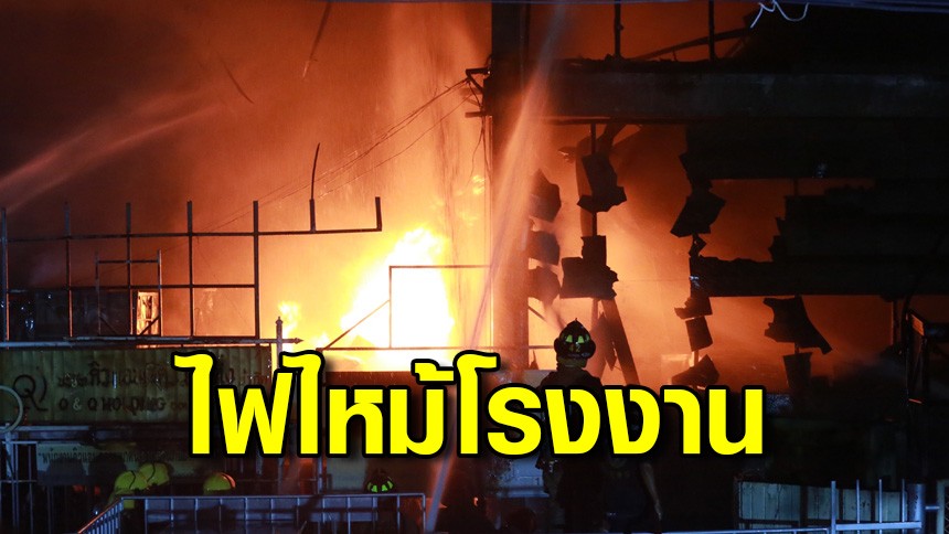 ไฟไหม้โรงงานผลิตแผ่นยาง ควันไฟพวยพุ่ง จนท.ระดมฉีดโฟมสกัดกว่า 2 ชั่วโมง คุมเพลิงไว้ได้
