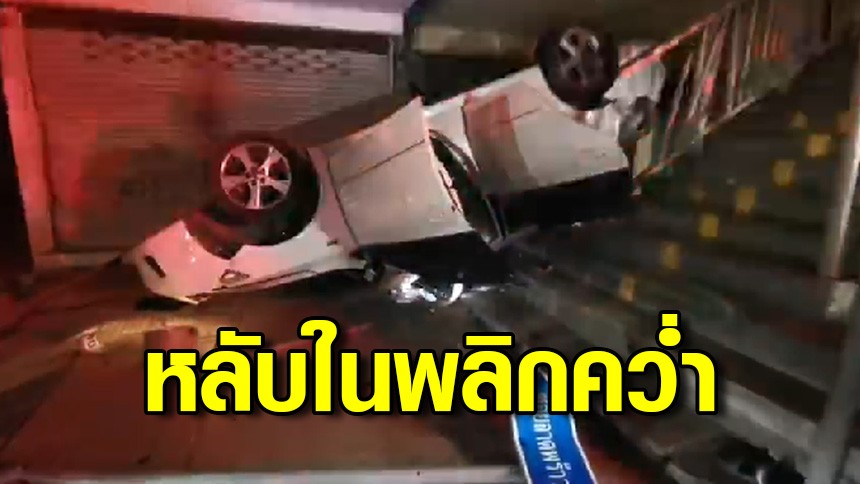 หนุ่มขับเก๋งกลับจากฉลองปีใหม่พาเพื่อนไปส่งบ้าน เกิดวูบหลับใน ชนขอบทางพลิกคว่ำดับ