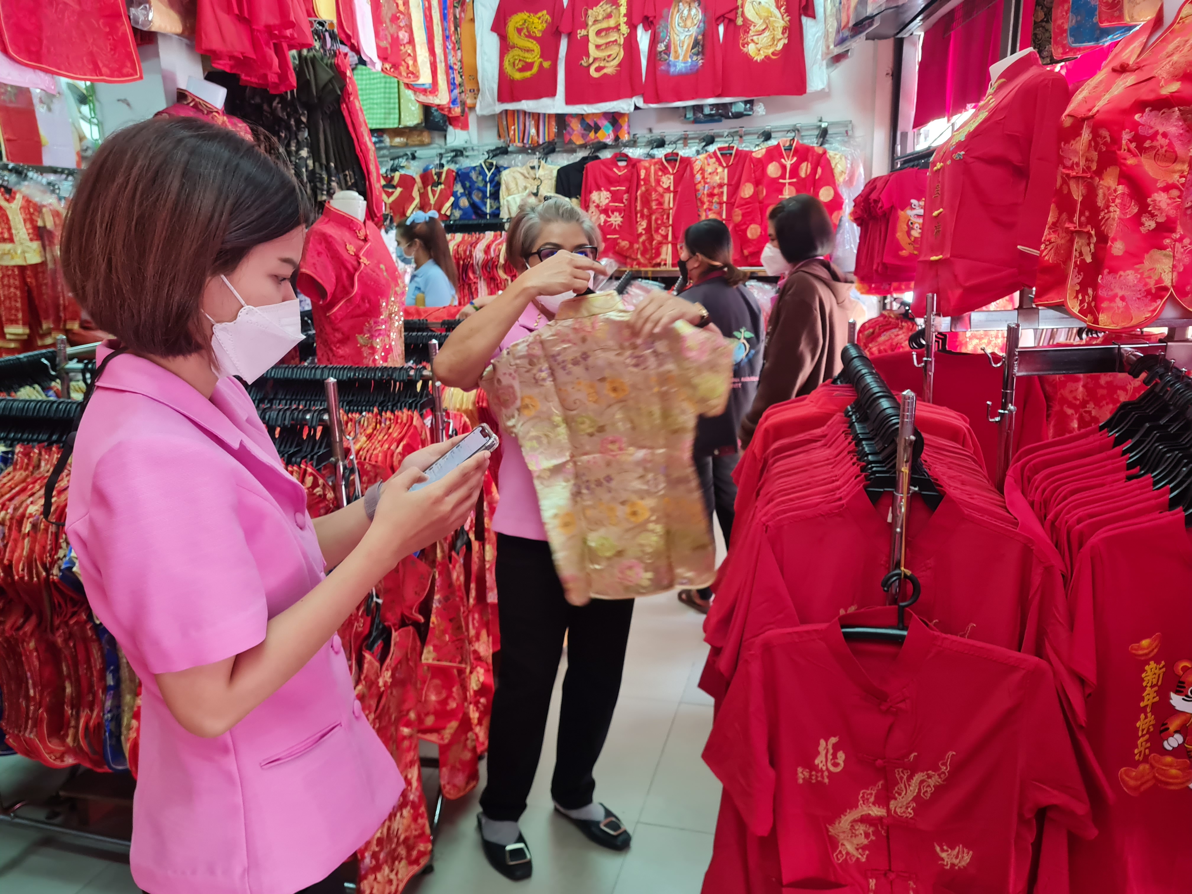 นางสุภัค สวัสดี เจ้าของร้านน้องพีบูติค เปิดเผยว่า ในช่วงเทศกาลตรุษจีนปีนี้ ทางร้านได้นำชุดตรุษจีนมาขายตั้งแต่ช่วงกลางเดือนมกราคม โดยจะเน้นไปที่ชุดสีแดงเป็นหลัก เนื่องจากคนจีนเชื่อว่าเป็นสีแห่งความมงคล นอกจากนี้ยังมีชุดสีทอง สีเหลือง และสีน้ำเงินมาวางขายให้ลูกค้าได้เลือกซื้อด้วย