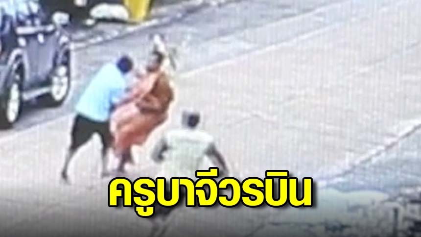 จีวรบิน ครูบากระโดดถีบผู้ใหญ่บ้านหงายหลัง ก่อนถูกรุมกระทืบ