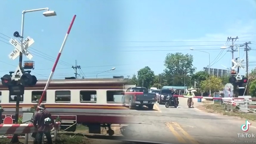 ผู้ใช้ tiktok ชื่อ kunlukkaew โพสต์คลิปความงงงวย กับไม้กั้นรถไฟแห่งหนึ่งที่ทำงานอย่างประหลาด เพราะเมื่อรถไฟมาไม้กั้นกลับเปิดขึ้น แต่พอรถไฟแล่นไปแล้ว ไม้กั้นกลับปิดลง ซึ่งอาจเป็นความผิดพลาดของระบบไม้กั้น