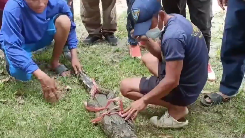 ชาวบ้านผวา หลังเป็ดไล่ทุ่งที่เลี้ยงไว้หายไปวันละตัวสองตัว ตอนแรกคิดว่าเป็นตัวเงินตัวทอง กลายเป็นจระเข้ ตามเจ้าหน้าที่ประมงมาช่วยจับกลับ แม้ถูกกัดได้รับบาดเจ็บไป 2 ราย สุดท้ายจับได้แล้วเมื่อ 15.00 น. วันนี้ (23 เมษายน)