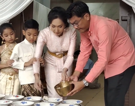ฮือฮาจัดงานทำบุญบ้านพร้อมงานแต่งแม่และลูกแฝด