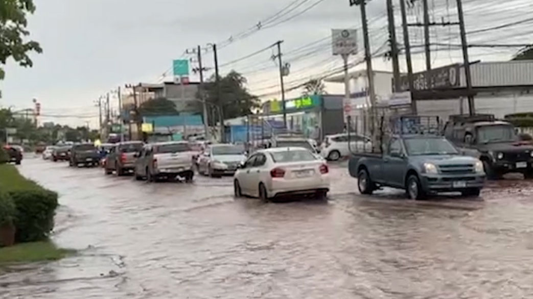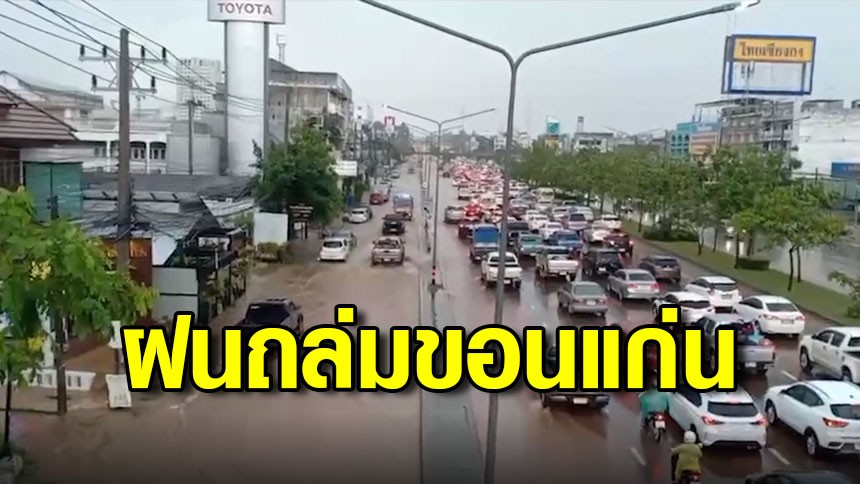 น้ำท่วมเมืองขอนแก่น ถนนมิตรภาพไม่รอดการจราจรติดขัด ซ้ำกระแสน้ำเชี่ยวซัดจยย.ล้ม จมน้ำเพียบ