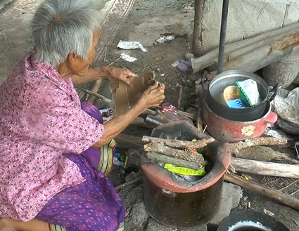 นางจันทร์ อายุ 85 ปี อยู่ บ้านเหล่าภูมี ต.หนองญาติ อ.เมือง จ.นครพนม กำลังสาละวนอยู่กับการก่อไฟนึ่งข้าวเพื่อให้เหลนชายตัวเล็กสามคนได้กินมื้อเที่ยง โดยทั้งสี่คนอาศัยอยู่ที่บ้านหลังนี้ด้วยกัน หลังจากที่พ่อแม่ของเด็กทั้งสามได้แยกทางกัน และทิ้งลูกชายไว้ให้ยายทวดเลี้ยงถึงสามคน