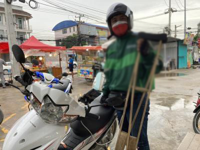 วันที่ 3 ตุลาคม เวลา 08.00 น.ผู้สื่อข่าวรายงานว่าระหว่างที่เดินทางอยู่ในตัวเมืองระยอง ได้ขับรถผ่านไรเดอร์กำลังวิ่งส่งอาหาร แต่ไรเดอร์คนนี้ ที่หน้ารถ จยย. มีไม้ค้ำยันแขวนอยู่ที่หน้ารถด้วยจึงเกิดความสงสัยและได้เข้าไปพุดคุยกับไรเดอร์คนดังกล่าว