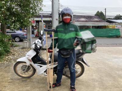 ไรเดอร์สู้ชีวิตแม้ขาเจ็บหอบไม้ค้ำยันประคองตัวเองวิ่งส่งอาหาร
