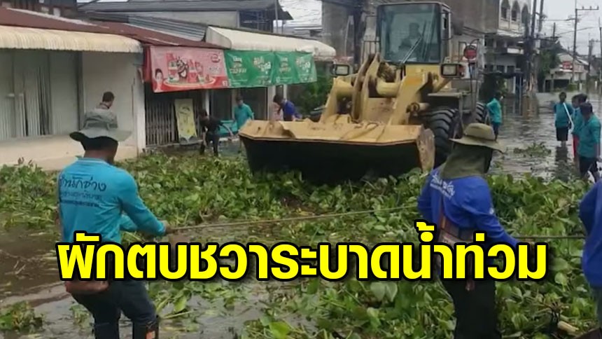 ผักตบชวาระบาดน้ำท่วมอุบลฯ ไหลจากห้วยวังนองเข้าเต็มชุมชน