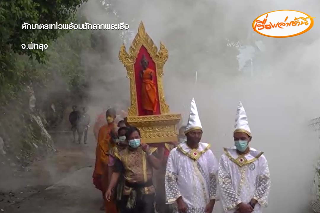 ส่วนที่บริเวณลานหน้าสำนักสงฆ์วังสันติบรรพต ในเขตเทศบาลเมืองพัทลุง จ.พัทลุง เหล่าบรรดาหัวหน้าส่วนราชการพ่อค้าแม่ค้าและประชาชน ร่วมในพิธีตักบาตรเทโว เนื่องในเทศกาลวันออกพรรษา เพื่อเป็นการสืบสานประเพณีที่มีมาแต่โบราณ โดยมีพระภิกษุสมเณร เดินลงจากยอดเขาคูหาสวรรค์ สำนักสงฆ์วัดวังสันติบรรพต รอรับบิณฑบาตจากพุทธศาสนิกชน และที่บริเวณศาลหลักเมืองจังหวัดพัทลุง พุทธศาสนิกชนได้ร่วมกันตักบาตรเทโว จำนวนมากเช่นกัน