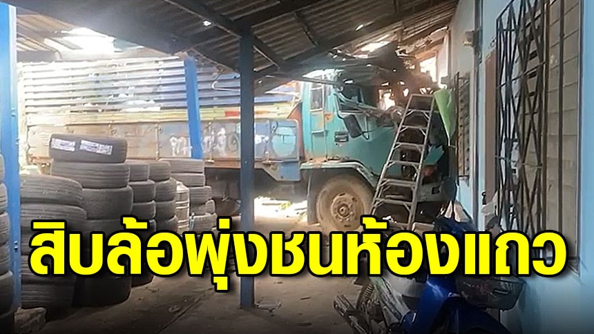 รถสิบล้อเสียหลักพุ่งชนบ้าน หวิดทับหญิงนอนหลับ