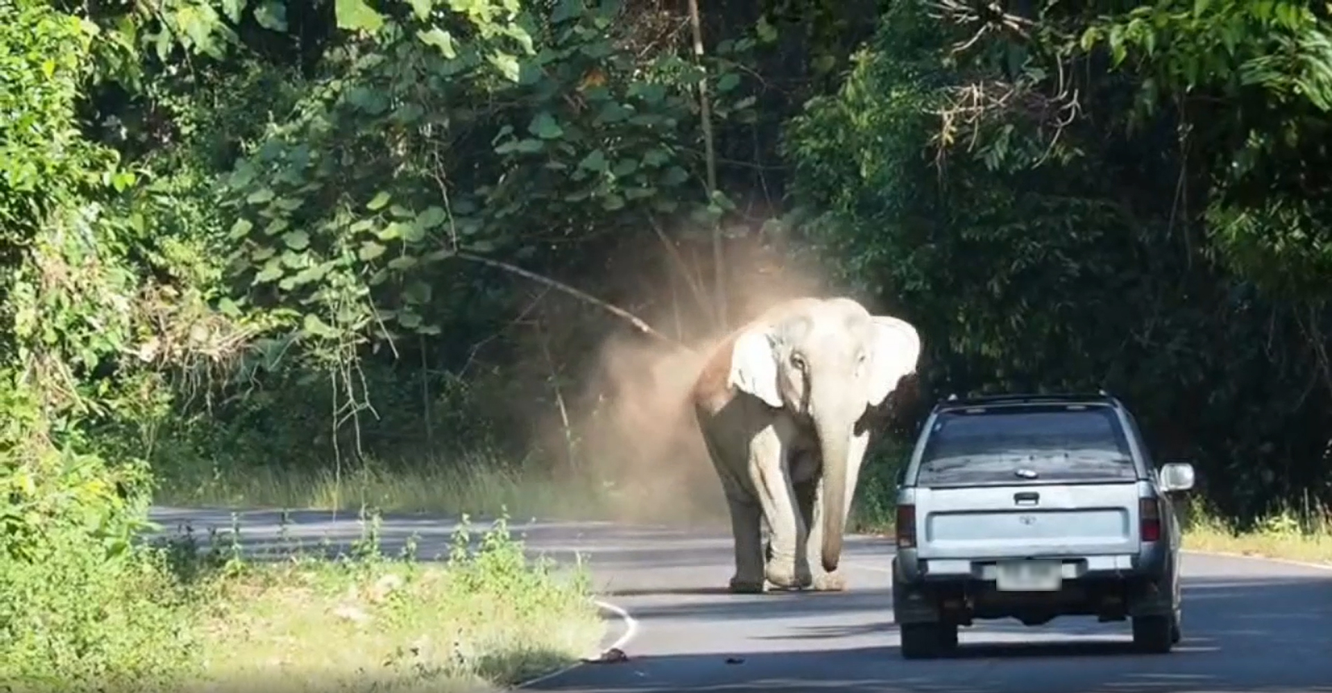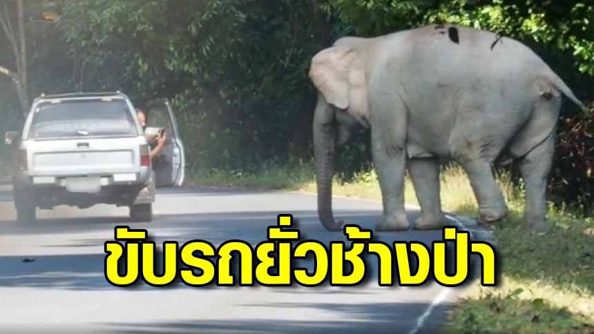 อย่าหาทำ! กระบะขับยั่วช้างป่าเขาใหญ่ ช้างวิ่งเข้าใส่ ยังจอดรถเบิ้ลเครื่อง เปิดประตูถ่ายรูป