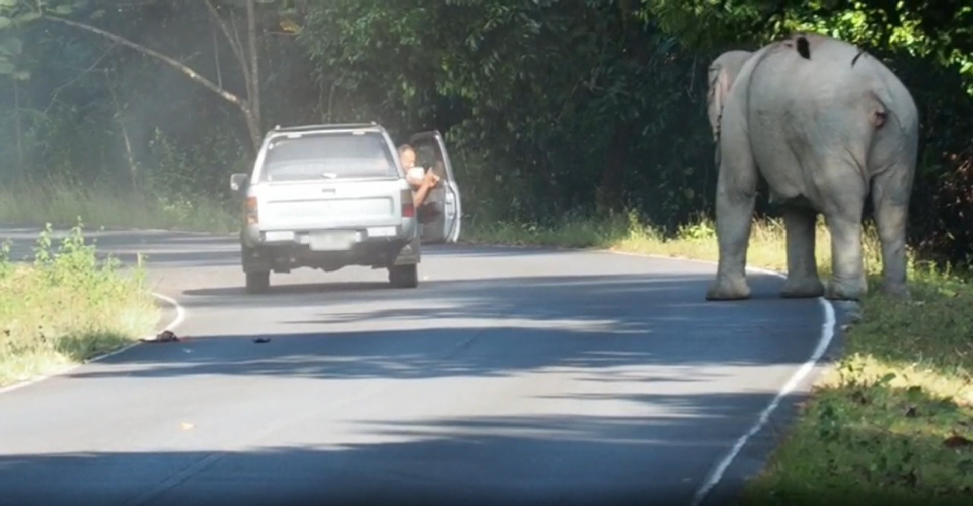 ผู้สื่อข่าว จ.นครนายก รายงานว่า มีการเผยแพร่คลิปวิดีโอ ที่นักท่องเที่ยวสามารถบันทึกภาพเหตุการณ์ระทึก ขณะขับรถอยู่ภายในอุทยานแห่งชาติเขาใหญ่ โดยช้างป่ากำลังหาอาหารกินอยู่ริมถนน มีรถกระบะได้ขับเข้าไปใกล้ช้างป่า และพยายามขับฝ่า จนช้างวิ่งเข้าใส่รถ ก่อนที่รถกระบะจะเร่งเครื่องควันดำโขม่งลักษณะท้าทาย ก่อนจะเปิดประตูรถ พร้อมหยิบมือถือขึ้นมาบันทึกภาพช้างในระยะใกล้