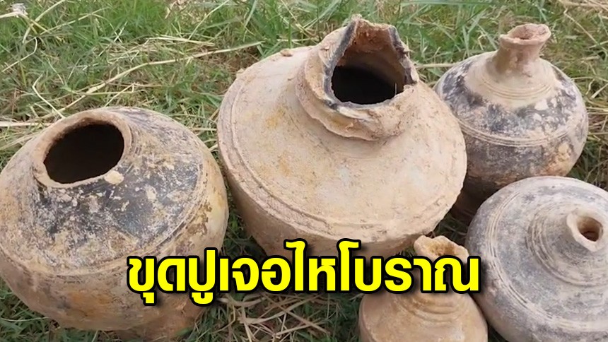 ชาวบ้านออกไปขุดปูในแปลงนา แต่เจอไหโบราณ 8 ใบ ผู้นำชุมชนประสานกรมศิลปากรตรวจสอบอายุ