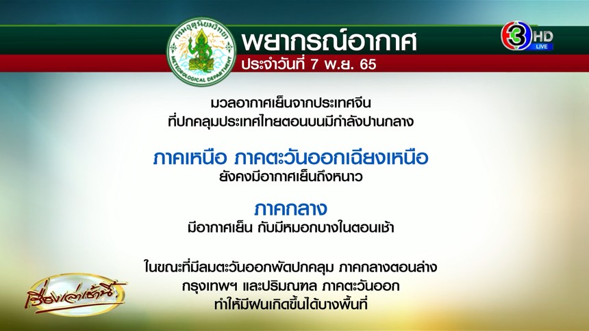 ในขณะที่มีลมตะวันออกพัดปกคลุม ภาคกลางตอนล่าง รวมทั้งกรุงเทพมหานครและปริมณฑล และภาคตะวันออก ทำให้บริเวณดังกล่าวมีฝนเกิดขึ้นได้บางพื้นที่ ขอให้ประชาชนดูแลรักษาสุขภาพเนื่องจากสภาพอากาศที่เปลี่ยนแปลงไว้ด้วย