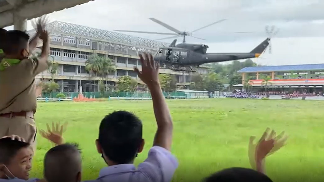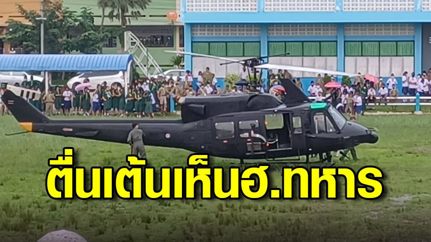 ฮ.ทหารลงจอดฉุกเฉิน หนีฝนตกหนัก เด็กนักเรียนตื่นเต้นหนักมาก เพิ่งเคยเห็นครั้งแรก