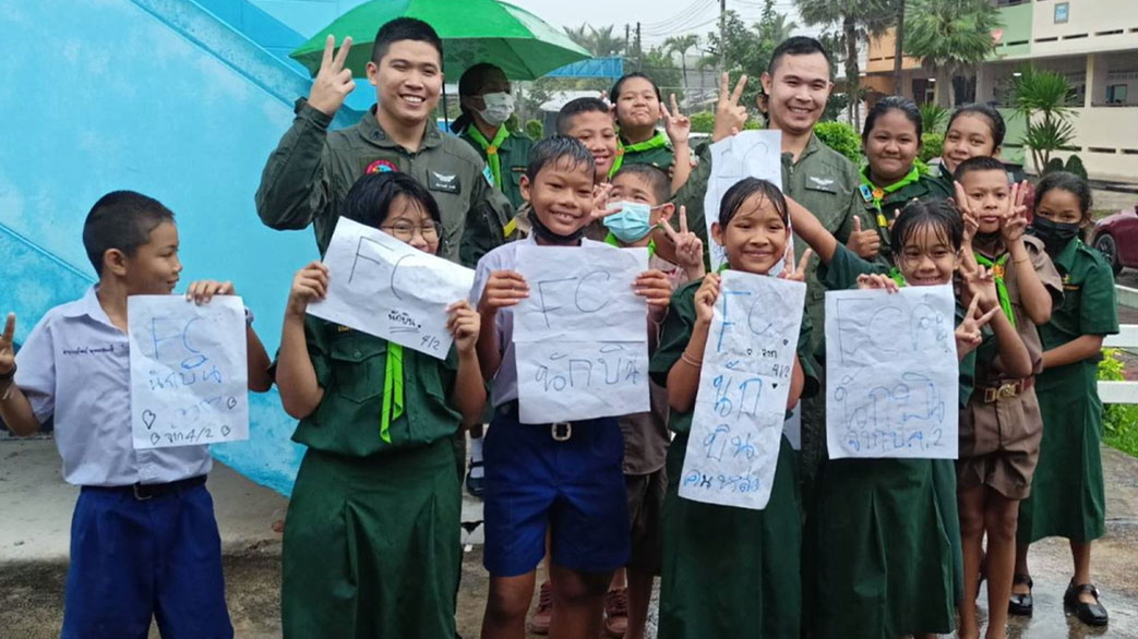 โดยขณะร่อนลงจอด ทำให้เด็กนักเรียนเกือบ 1 พันคน ที่กำลังเรียนหนังสือ ต่างออกมาโบกไม้โบกมือ ส่งเสียงร้องด้วยความดีใจเมื่อ ฮ.ลงจอดได้อย่างปลอดภัย ก่อนที่เด็กนักเรียน พร้อมครูได้เดินทางไปต้อนรับนักบินและทหารที่เดินทางมา พร้อมเขียนข้อความเพื่อให้กำลังใจ และถ่ายภาพกับเครื่องบนอย่างใกล้ชิด โดยเด็กนักเรียนหลายคนต่างบอกว่าเป็นครั้งแรกที่เห็นเครื่องบินทำให้รู้สึกดีใจและนักบินทุกคนปลอดภัย