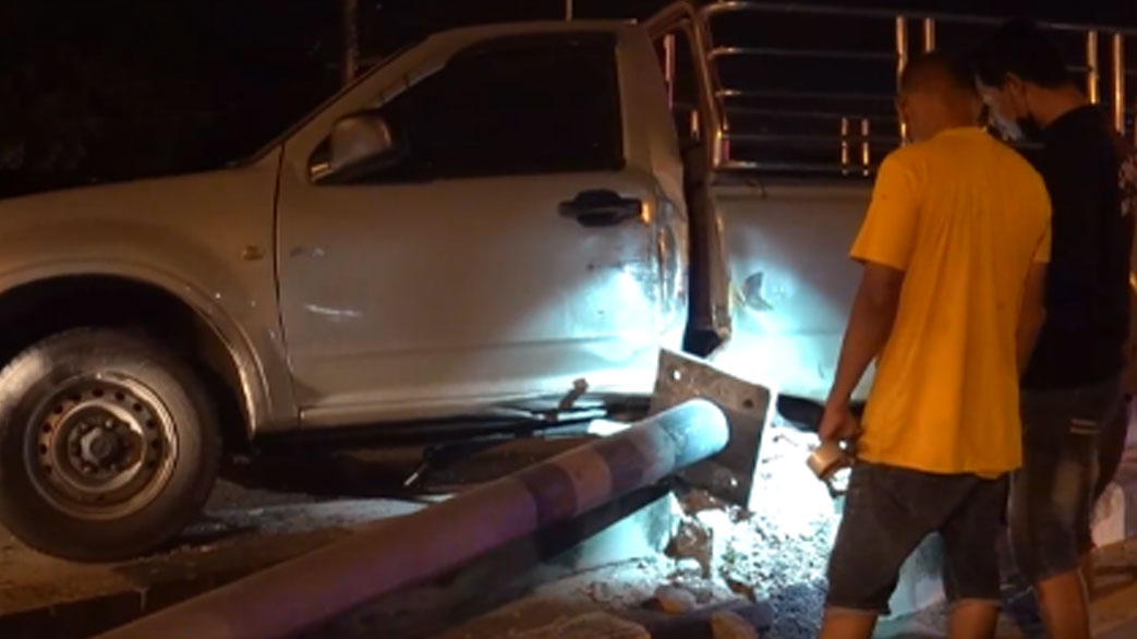 เมื่อเวลา 19.00 น. วันที่ 11 พ.ย. 65 ร.ต.อ.สุริยา ภูมิวัฒน์ รองสว. (สอบสวน) สภ.บางปะกง จ.ฉะเชิงเทรา พร้อมหน่วยกู้ภัยฉะเชิงเทรา ตรวจสอบเหตุรถกระบะชนเสาไฟทาง บริเวณจุดกลับรถปากซอยยวงสุวรรณ ถนนสิริโสธร ขาเข้าบางปะกง หมู่ 8 ต.ท่าสะอ้าน อ.บางปะกง พบรถกระบะ อีซูซุ ดีแมค สีบอร์น-ทอง ทะเบียนชลบุรี เสียหลักชนทางเท้าก่อนจะปีนขึ้นเกาะกลางแล้วไปฟาดกับเสาไฟทางจนล้มขวางถนน