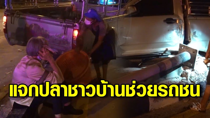 หญิงวัย 70 ปี แจกปลาพลเมืองดี เข้าช่วยหลังขับกระบะชนเสาไฟฟ้า