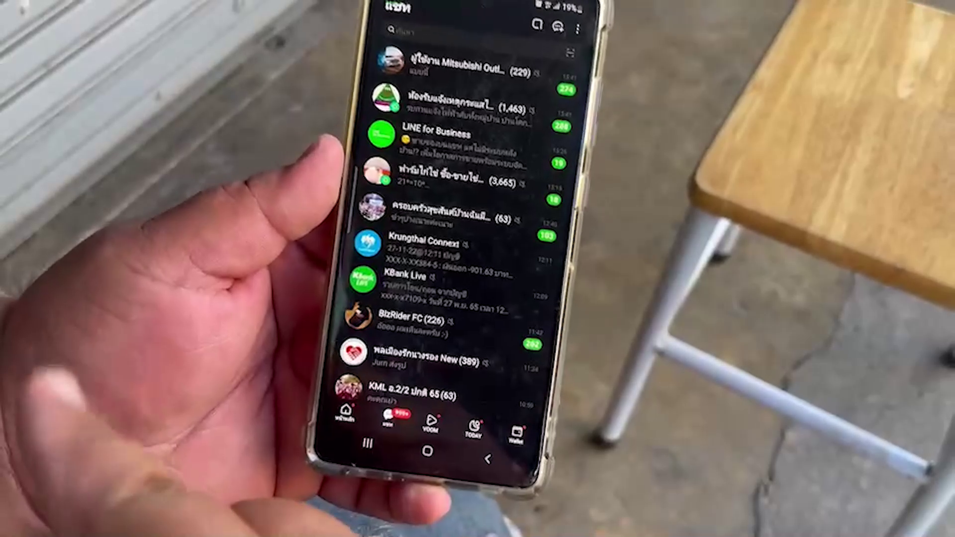 จากนั้นเขาได้ส่งแอปมาให้ดาวน์โหลด ตนก็โหลดตามคำแนะนำ จนลืมไปว่าเคย”เห็นข่าวมาแล้ว”กระทั่งเขาให้กรอกรหัสของตนเองที่ใช้กับแอปโทรศัพท์เข้าไป หลังจากนั้นหน้าจอโทรศัพท์ของตนเป็นสีน้ำเงินเข้ม แล้วมีข้อความว่า”อยู่ระหว่างการตรวจสอบชื่อนามสกุลห้ามใช้โทรศัพท์”