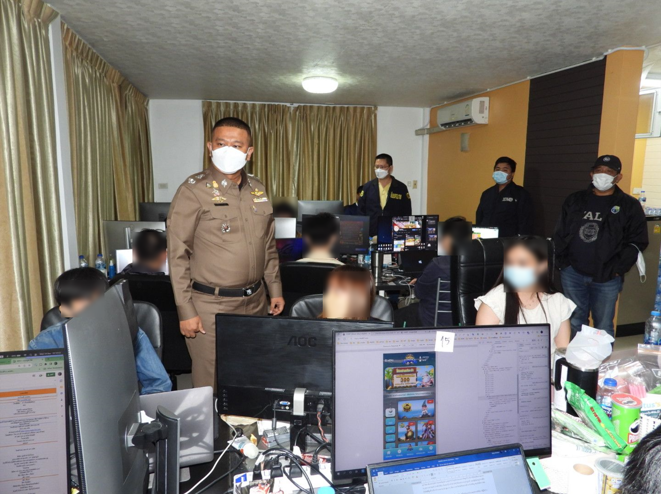 พล.ต.อ.ดำรงศักดิ์ กิตติประภัสร์ ผบ.ตร. ได้สั่งการให้ พล.ต.อ.รอย อิงคไพโรจน์ รอง ผบ.ตร. ในฐานะ ผอ.ศปอส.ตร. (PCT) , พล.ต.ท.ธิติ แสงสว่าง ผบช.น. , พล.ต.ต.ธีรเดช ธรรมสุธีร์ ผบก.สส.บช.น. และหน.ศปอส.ตร. (PCT) ชุดที่ 5 ร่วมกับเจ้าหน้าที่ตำรวจ ศปอส.ตร. (PCT) ชุดที่ 5 และชุดสืบสวนนครบาล (บก.สส.บช.น.) และ กก.สส.จว.ระยอง จับกุมผู้ต้องหาได้จำนวน 31 คน ในข้อหา ร่วมกันจัดให้มีการเล่น หรือทำอุบายล่อช่วยประกาศโฆษณา หรือชักชวนโดยทางตรงหรือทางอ้อม ให้ผู้อื่นเข้าเล่นหรือเข้าพนันทางสื่ออิเล็กทรอนิกส์โดยไม่ได้รับอนุญาตจากเจ้าพนักงานและร่วมกันฟอกเงิน , ร่วมกันลักลอบเล่นการพนัน ผ่านระบบอิเล็กทรอนิกส์ โดยผิดกฎหมาย และจัดให้มีการเล่นการพนันฯ