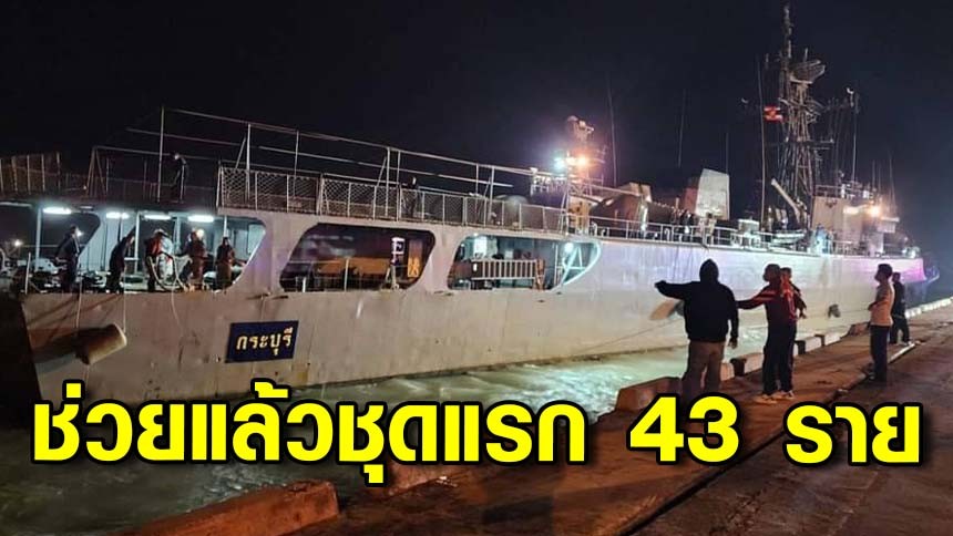 กองทัพเรือ ลำเลียงกำลังพลที่ลอยคออยู่ในทะเล ชุดแรก 43 คน เทียบท่าเรือน้ำลึกบางสะพาน เบื้องต้นพบเจ็บ 4 ราย