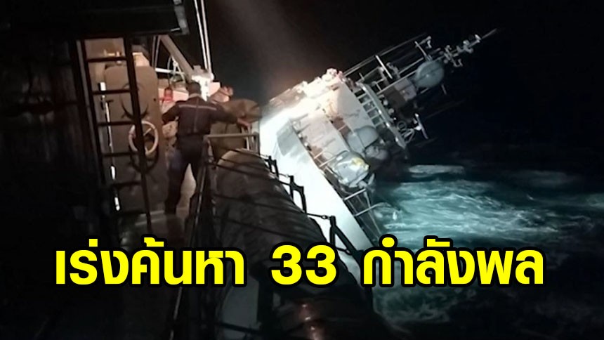 เร่งค้นหา 33 กำลังพล เหตุเรือหลวงสุโขทัยอับปาง - ผบ.ทร.สั่งเลื่อนกิจกรรม 100 ปี 'เสด็จเตี่ย'